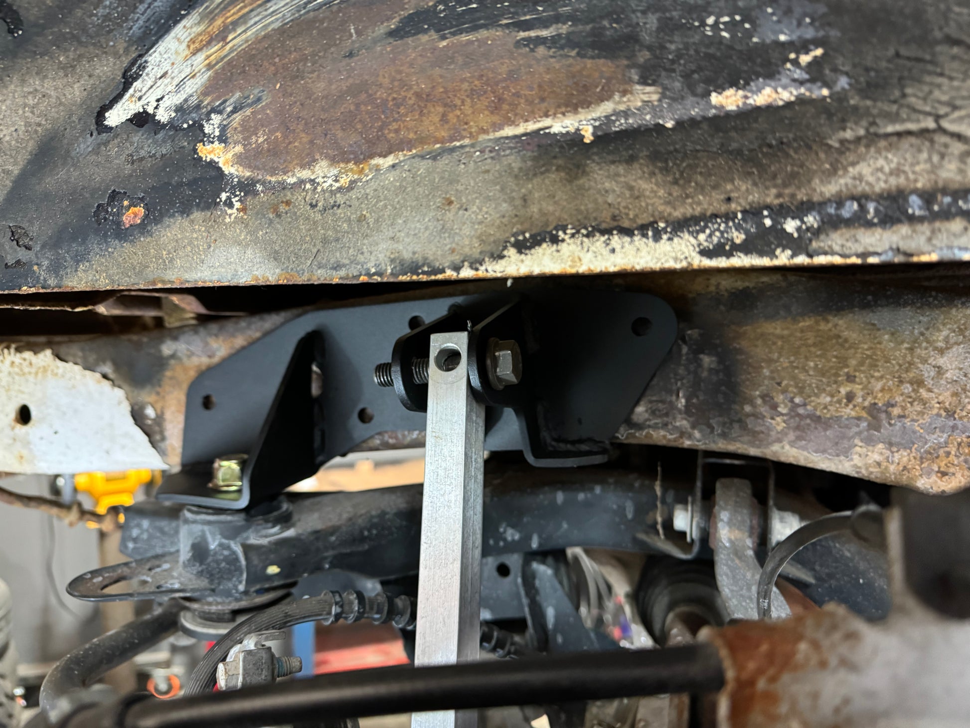 Kit contains all mounting brackets and hardware required to mount the 2014-2023 Mustang S-550 and 2024+ S-650 rear subframe to your F-100 frame. Coil-overs not included in kit.
