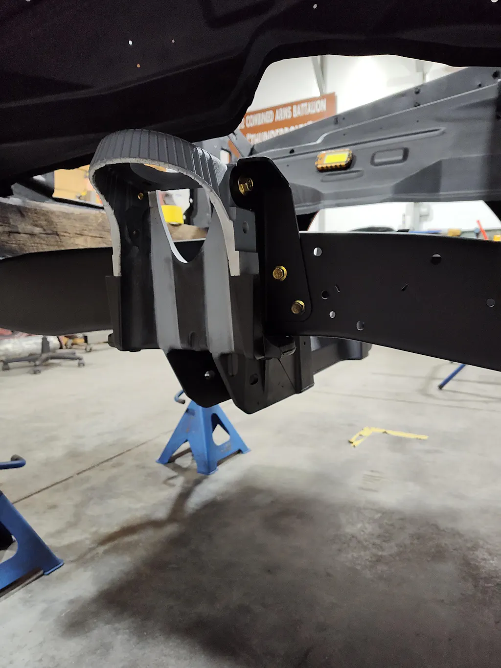 This bolt in kit is designed to mount the 2003-2011 Crown Victoria front suspension to trucks with 34” outside to outside frame rails. It does not require welding, only drilling holes. It stiffens the factory frame where the crossmember mounts and ties the Crown Victoria suspension securely to your frame. This kit contains all brackets and hardware necessary for install. You will need to cut/grind away your old front suspension brackets.