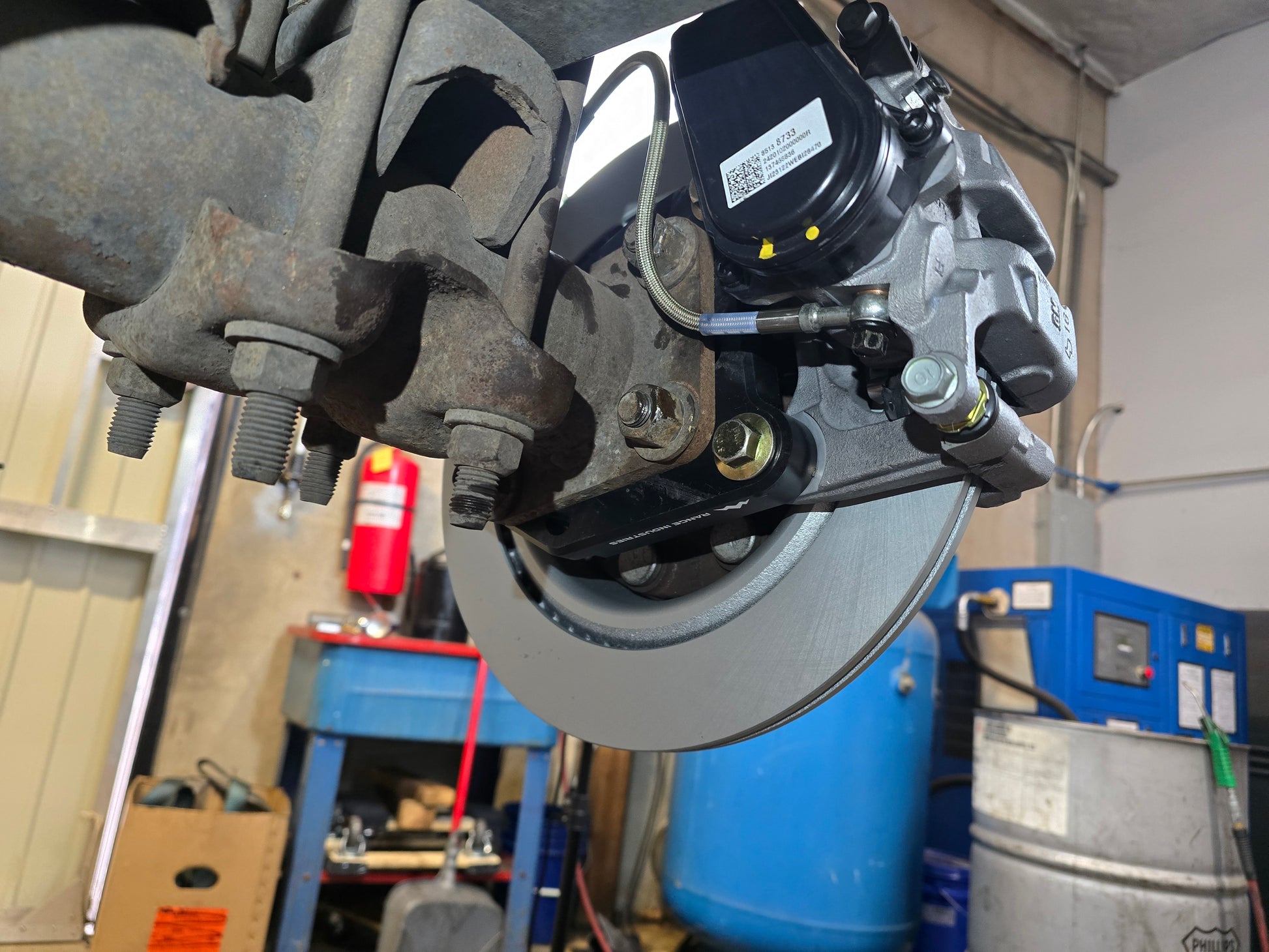 Introducing Range Industries Electronic Parking Brake (EPB) kit for the 99-07 GM 14 Bolt. This product allows you to replace your old drum-in-hat brake system with modern calipers that integrate an electronic parking brake and use a 14” vented rotor. This kit is a game-changer for anyone swapping 1 ton axles and needing a powerful parking brake. Stop your rig on any hill on the trail and know the parking brake will hold.