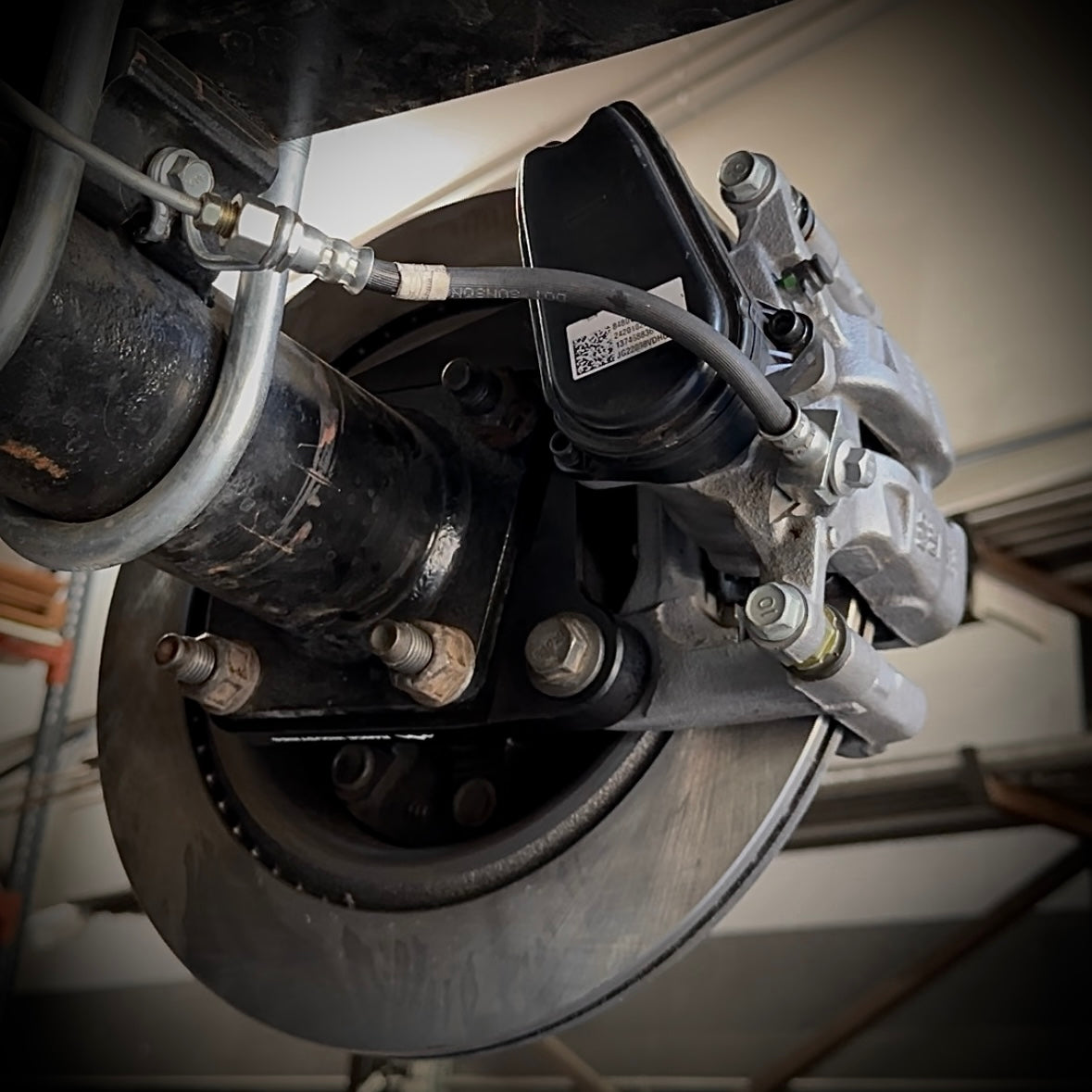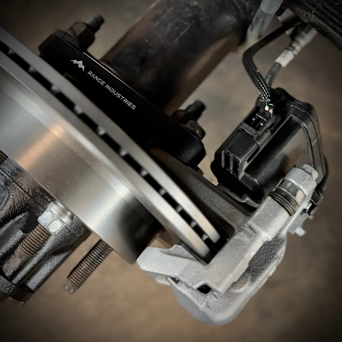 Introducing Range Industries Electronic Parking Brake (EPB) kit for the 99-04 Ford F250 / F350 rear axle (Sterling 10.5) and 99-07 Ford E250 / E350 full float rear axle (Dana 60). This product allows you to replace your old drum-in-hat brake system with modern calipers that integrate an electronic parking brake and use a 14” vented rotor. This kit is a game-changer for anyone swapping 1 ton axles and needing a powerful parking brake. Stop your rig on any hill on the trail and know the parking brake will hold.